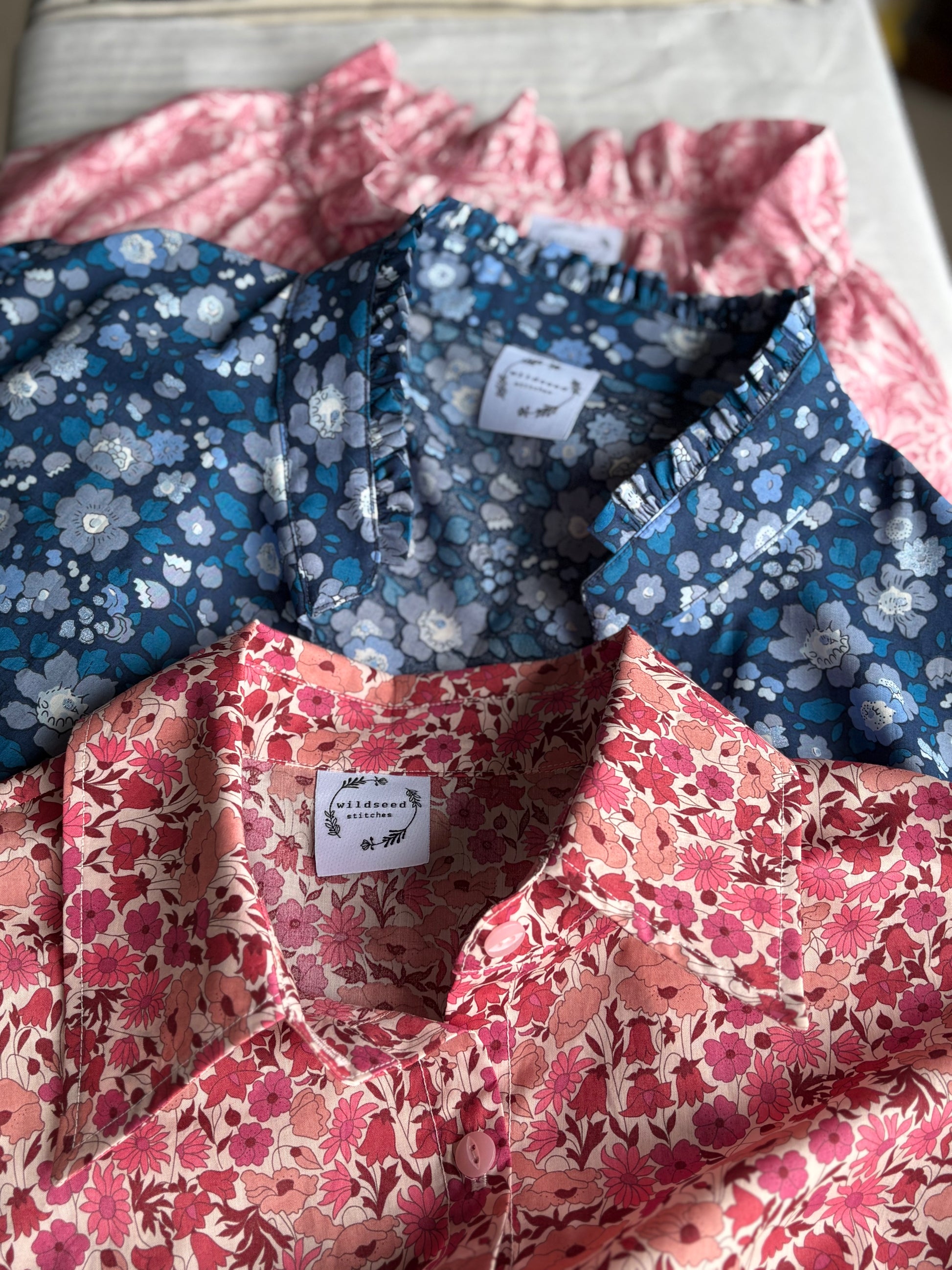 2x Long sleeve Peter pan collar blouses in fabric supplied: